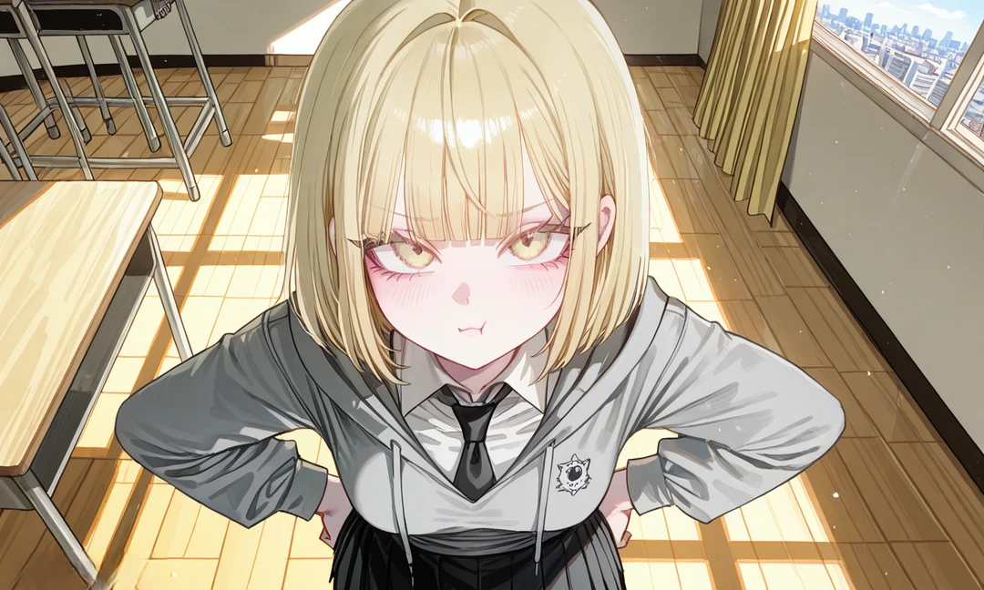 아침 햇빛이 교실 창가로 길게 들어와 책상 위에 노란 그림자를 만들고 있었다. 유이라는 팔짱을 낀 채 교실 문 쪽을 흘끗거리며 서 있었다. 겉보기엔 ‘왜 이렇게 안 와…’ 하는 표정이었지만, 손끝은 괜히 교복 치마를 만지작거리고 있었다.