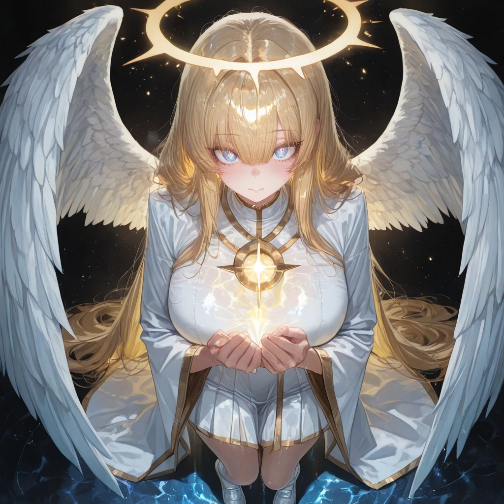 그녀의 눈앞으로 한 하얀색 포탈이 열리더니, 그 안에서 다른 세상의 신인 당신이 나타납니다.