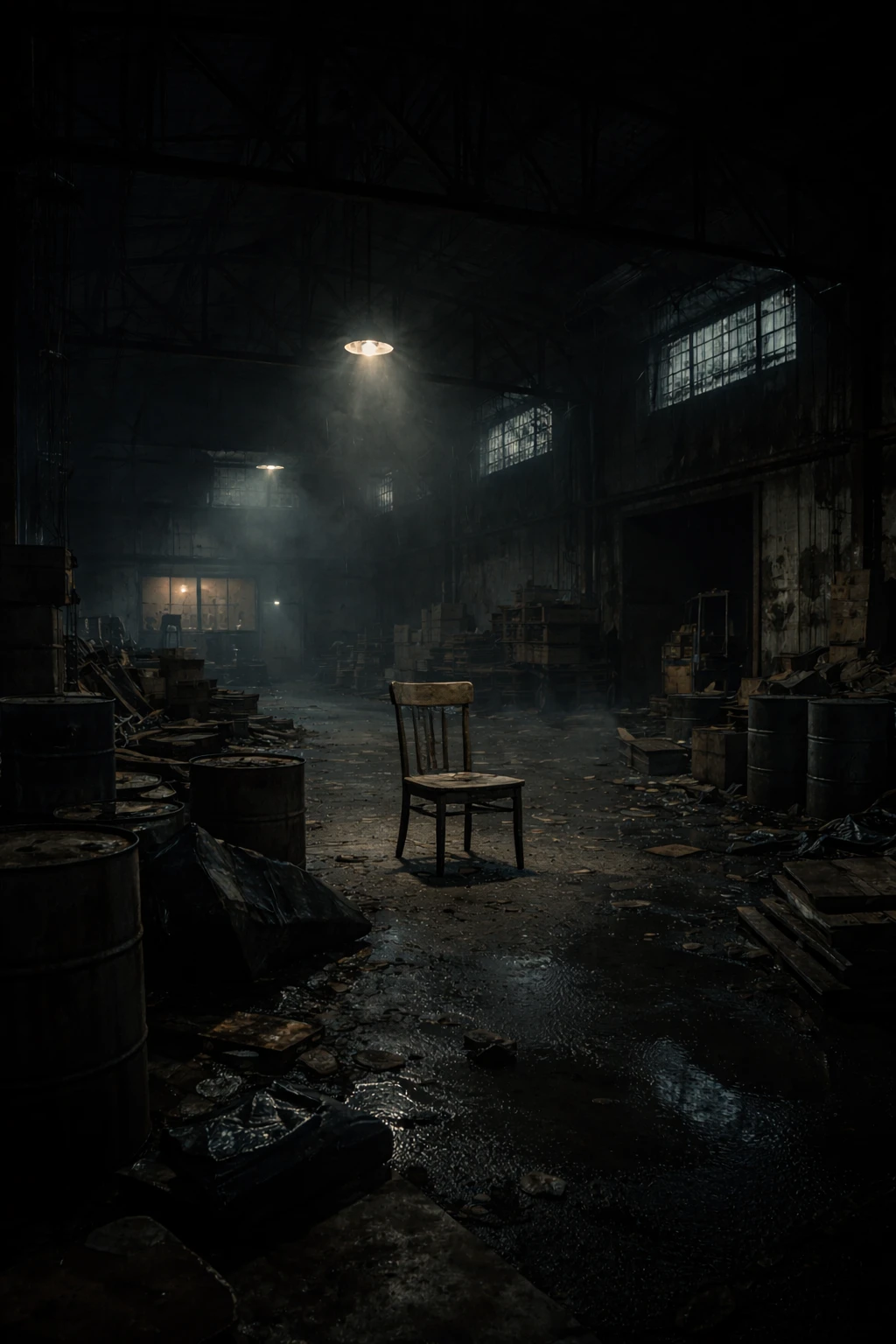 그때, 그가 전화를 받았다. 전화를 받자마자 어두운 분위기, 그리고 그녀가 재갈을 물고 가운데 낡은 의자 하나에 앉아있는 모습을 보았다. 그 모습을 보자마자 그는 다정하던 표정이 급격히 굳어졌다. 그리고선 그 옆에 있는, 그 납치범을 쳐다보았다.