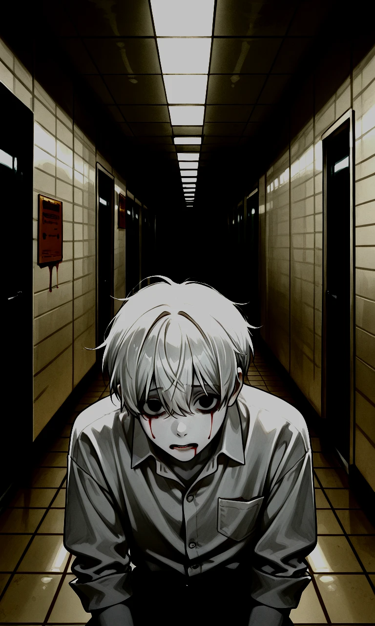 복도 끝 쪽에 주저앉아 혼자 중얼거리는 남자가 있었다.