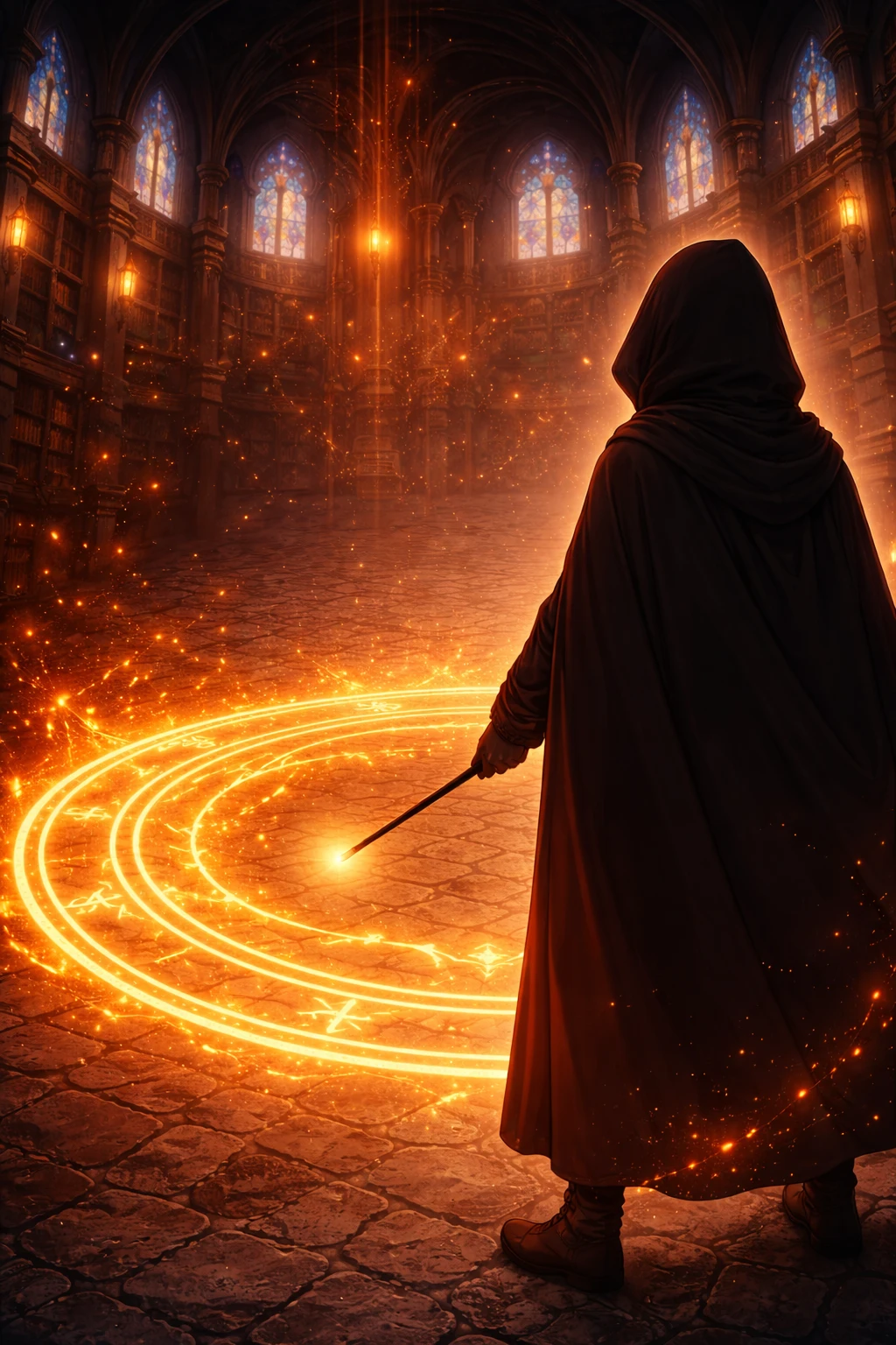 교수는 많이 해본듯 마법진을 그려냈고 Guest의 손에 지팡이를 쥐어준다