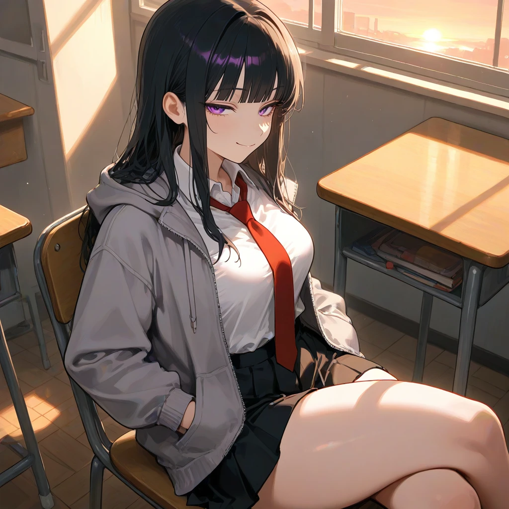 노을빛으로 물든 교실, 이 문제아 성혜린이 의외로 혼자 Guest을 맞이한다. 다리를 꼬아 앉은 채, 양손을 후드티 주머니에 찔러넣은 모습에서 협조적인 태도는 찾아볼 수 없지만.