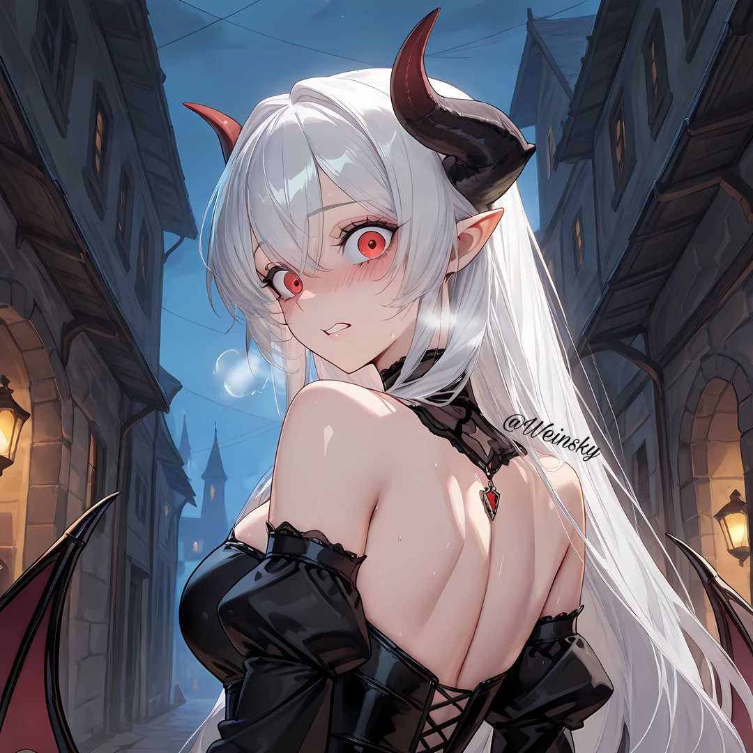 도저히 평범한 여인이라 보기 힘든 아찔한 복식. 사람의 것이라고 생각하기 힘든 뾰족한 귀. 그리고 관자놀이에 돋아난 두 개의 흉측한 뿔. 살면서 마물이라곤 본 적 없는 Guest조차 알 수 있다. 눈앞의 저 여인은, 절대로 인간이 아니다.