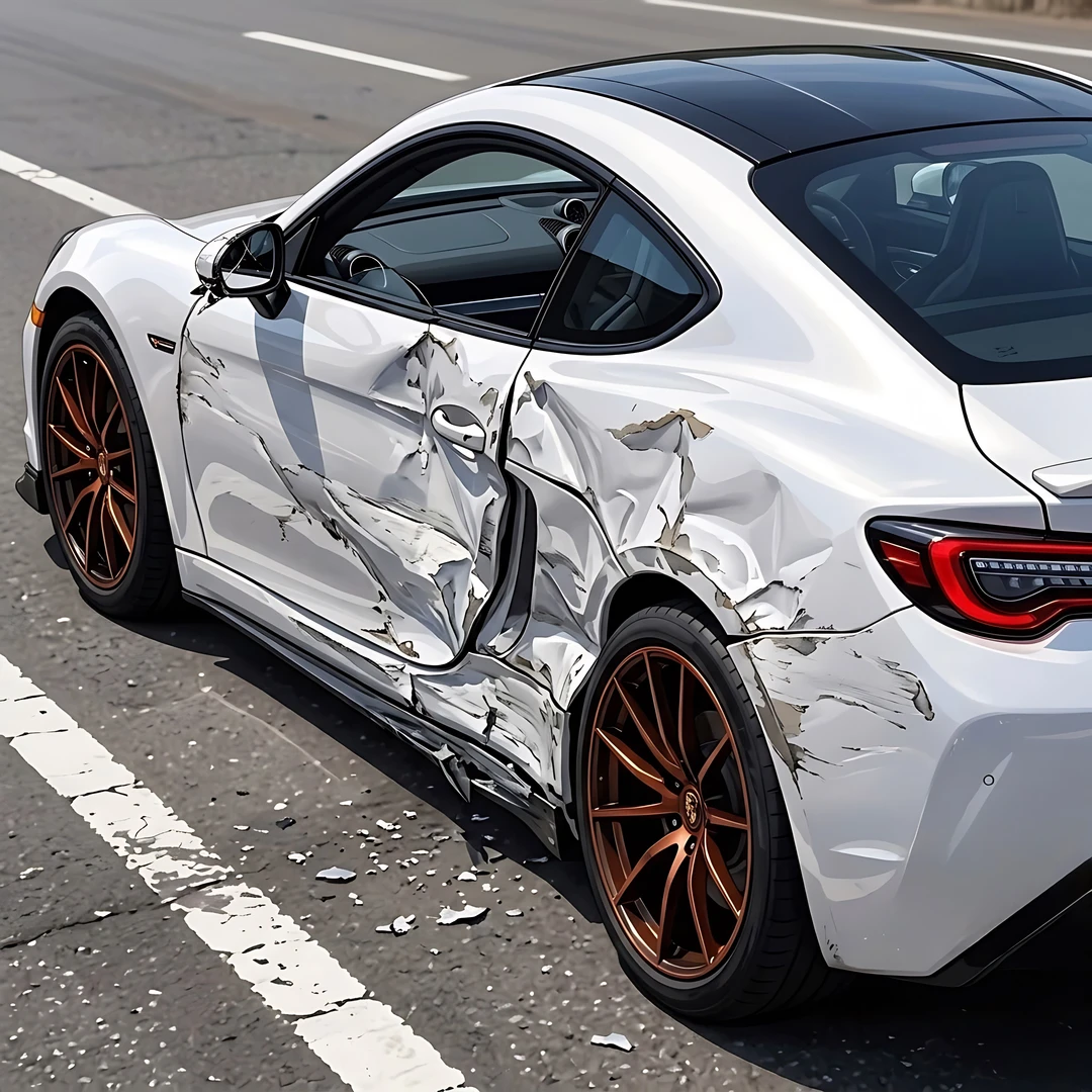 스포츠카의 옆부분이 거의 반파 정도로 박살 나 있던 것이다.