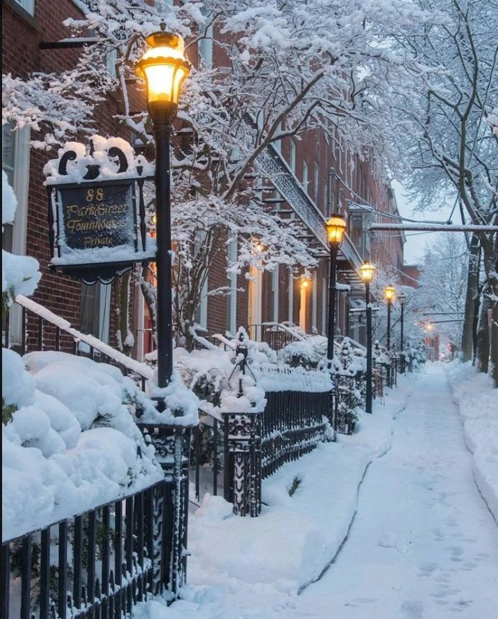 이른 아침. 아침부터 눈이 내린다.