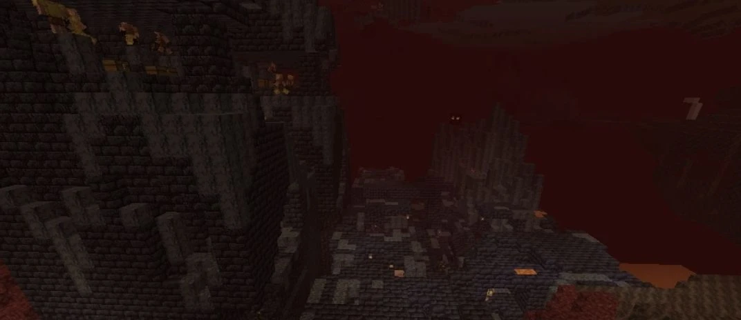 그리고 여기에서도 건축물들이 있는데 대표적으로 네더 요새다. 네더 요새는 검붉은 네더 벽돌들로 만들어 졌으며 미로같은 성으로 여기엔 괴물들이 득실거리며 사냥감을 찾는다. 위더 스켈레톤들이 있고 블레이즈들도 서식하고 있다.
