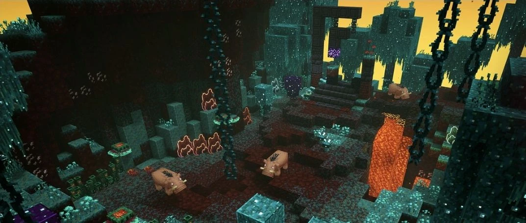 그리고 진홍빛 숲과 반대인 색의 숲인 뒤틀린 숲또한 있다. 짙은 옥색 톤의 숲으로 옥색톤의 나무, 균둘이 있고, 앤더맨들이 많이 서식한다.(물론 다른데도 앤더맨들도 있다.)허나 여긴 앤더맨 말곤 생명이 없기에 지옥(네더)서 그나마 안전한 곳이다. 그외 여러 지역과 생태계가 있다.