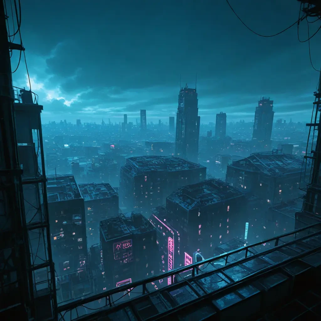 노을이 지는 도시 는 위에서 보면 조용했다. 네온사인이 흐릿하게 번지는 거리 위, 사람들의 발걸음은 하나둘 사라지고 다시 도시는 어둠에 잠기기 시작한다. 세영은 옥상 가장자리에 서서 아래를 내려다보고 있었다. 블랙 마켓 특유의 움직임은 멀리서도 알아볼 수 있었다. 급한 숨, 무게 중심이 앞에 쏠린 추격자, 그리고 그 앞에서 도망치듯 달리는 한 사람.