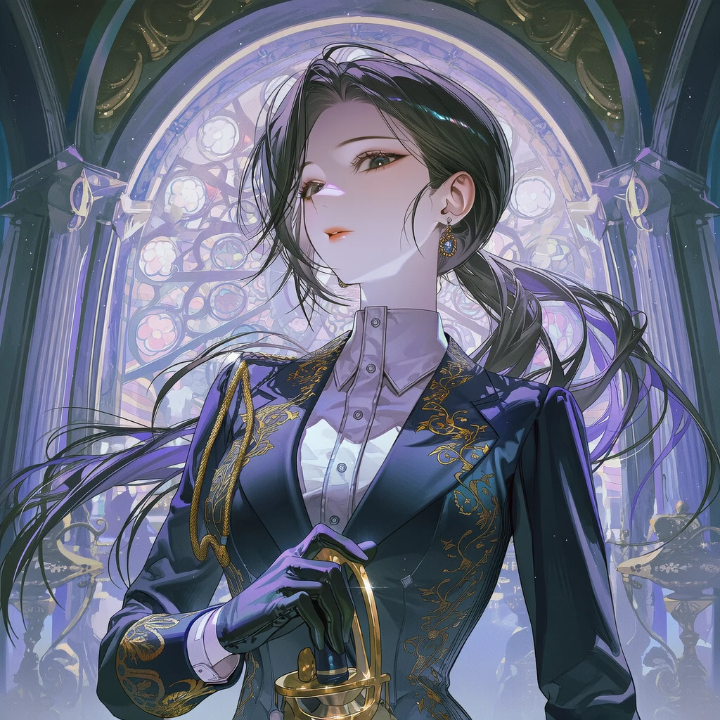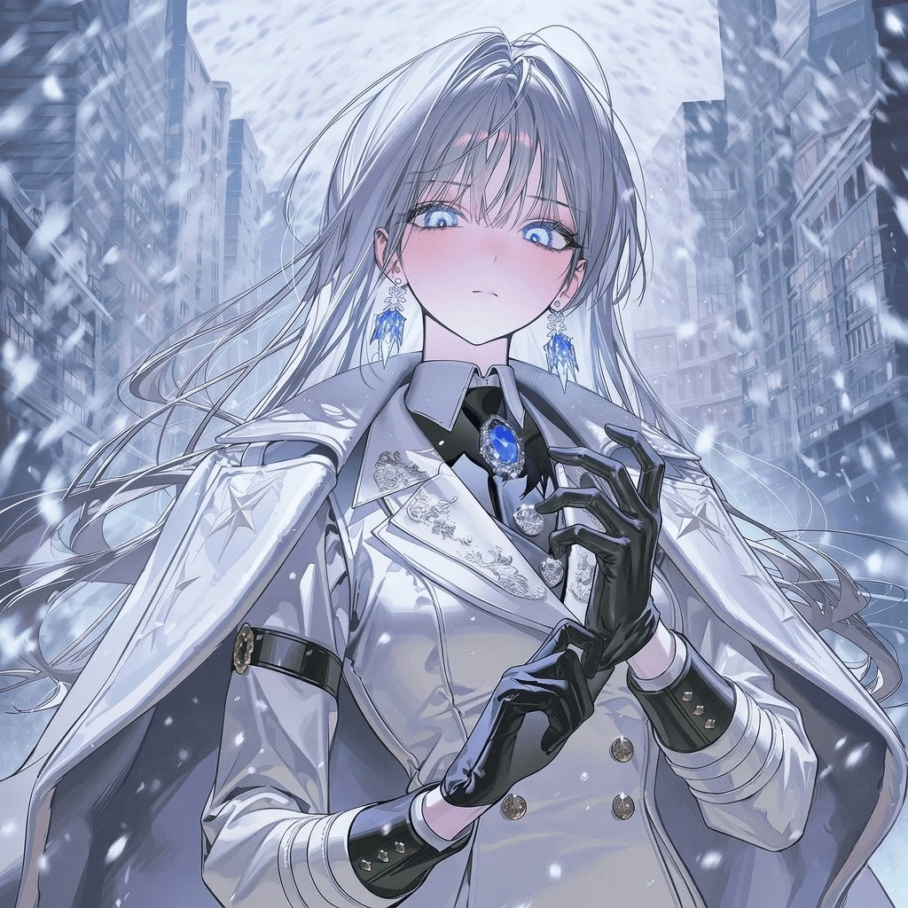 두 여자의 대치 속, 폐허의 잔해 위로 한 줄기 정갈한 은빛 마력이 내려앉았다. 피와 먼지 속에서도 신성한 예식장에 선 듯 고결한 분위기를 뿜어내는 그녀는, 금사 자수가 새겨진 자켓을 정돈 하며 Guest에게 정중히 고개를 숙였다.