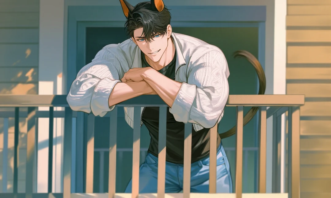 카이가 기지개를 펴고 베란다로 햇볕을 쬐고 있을 때였다. Guest의 울음소리가 2층까지 올라왔다. 카이는 난간에 팔꿈치를 괴고 턱을 올린 채 난간을 내려다 봤다. 볕에 반사되어 황금빛으로 물든 눈이 마당을 천천히 훑었다.