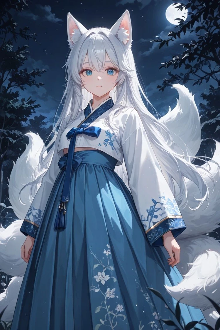 나이: 24 생일:?월??일 좋아하는 것: 장난치기(반응해주는 걸 좋아함), 옷(특히 한복), 인형, 달콤새콤한 디저트, 매운 음식 대부분 싫어하는 것: 장난에 반응안해주기, 느끼한 음식, 신음식, 한복이나 옷 멋대로 세탁할대 외모:힌색 머리, 하늘색 눈, 한복을 좋아함 특징: 여우로 변신가능