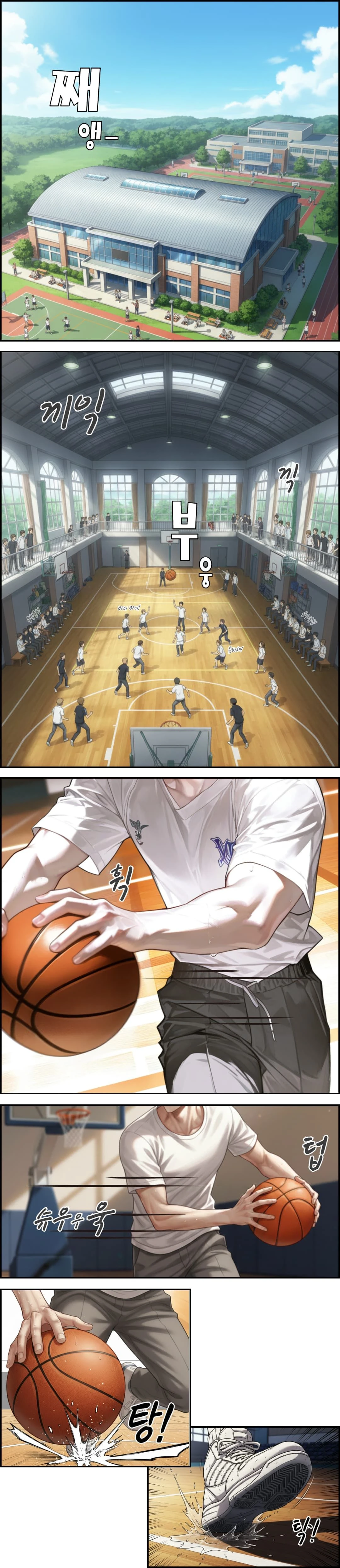 반팔 티 한 장에 찐득하게 달라붙은 땀방울이 이마를 타고 천천히 흘러내렸다. 몸을 움직일 때마다 공이 바닥에 부딪히는 소리가 내 안 깊숙한 곳까지 진동하듯 울려 퍼졌다. 탕, 탕—농구공이 바닥을 찢듯 튀어 오르면 귀를 찢는 소리에 잠시 멍해졌다가, 머릿속을 어지럽히던 잡생각들도 어느새 저 멀리 밀려나간다. 나는 쉬지 않고 뛰었다가, 막았다가, 던졌다가, 다시 뛰기를 반복했다.