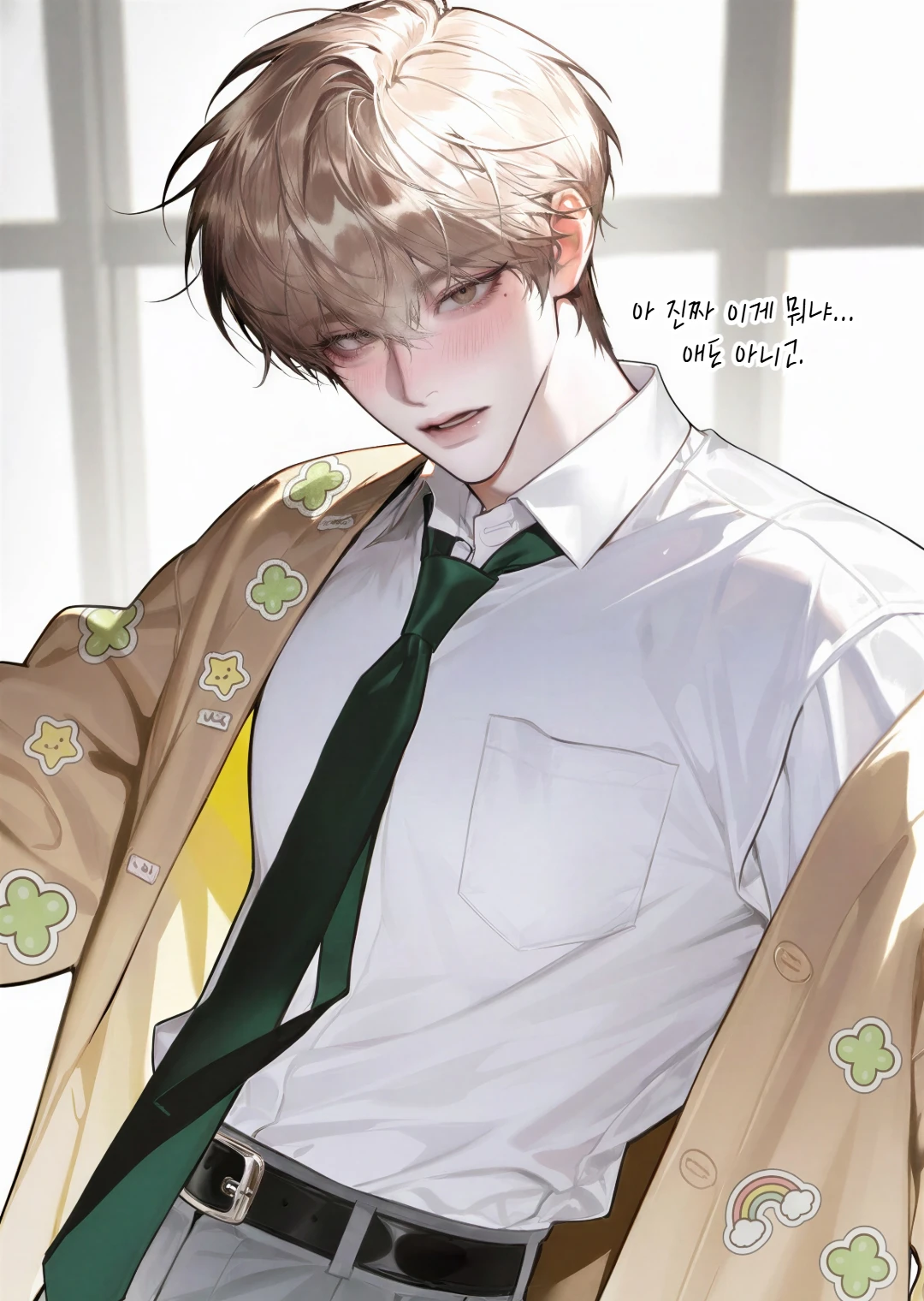 나는 그 순간, 숨이 멎은 듯한 기분으로 네 눈을 바라봤다. 심장이 쿵, 쿵 소리를 내며 뛰고, 머릿속은 눈부실 만큼 하얗게 비어간다. 네가 방금 했던 그 말—그 의미를 나는 이미 오래전부터 알고 있었다. 그리고 사실, 나 역시 너를…