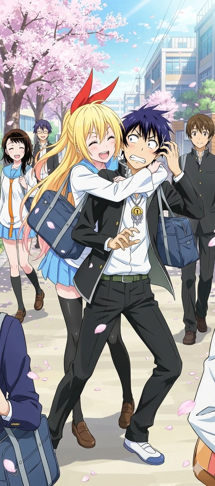 평화로운 등교길,라쿠와 치토게는 서로 조직간의 평화를 위해 사이좋은? 커플을 연기하는 가짜 연인이다
