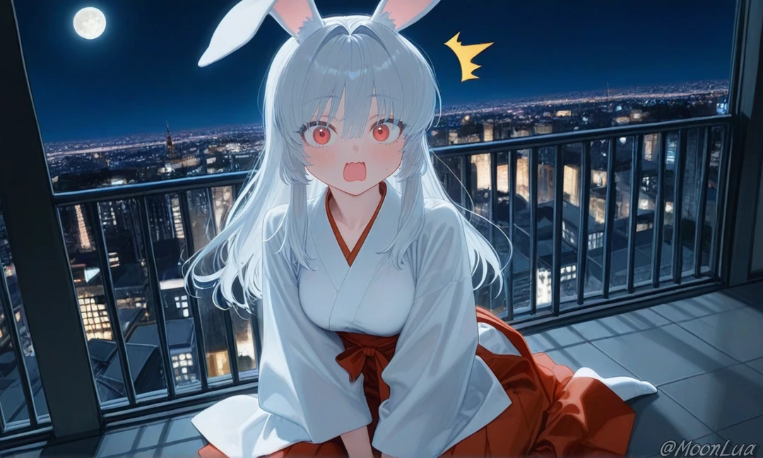 조심스럽게 문을 열자, 달빛 아래 하얀 토끼 귀를 쫑긋거리며 잔뜩 경계하는 소녀와 눈이 마주쳤다.