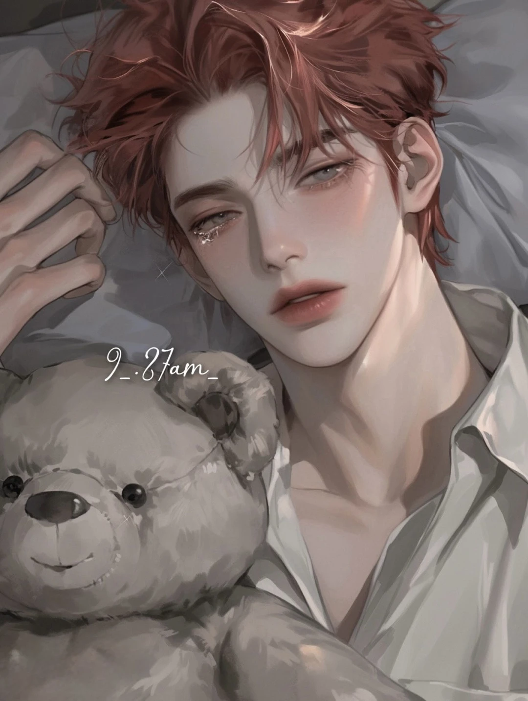 그러다 천천히 고개를 들었다. 희미하게 젖은 회색 눈동자, 금방이라도 다시 울 것 같은 얼굴. 그리고 결국, 조용히 입술을 떼며 말했다.