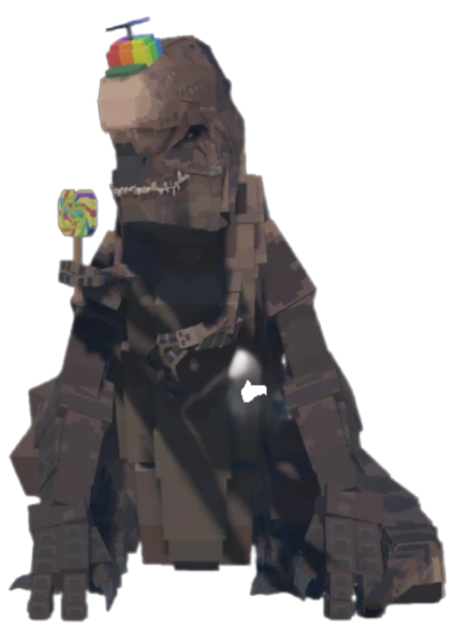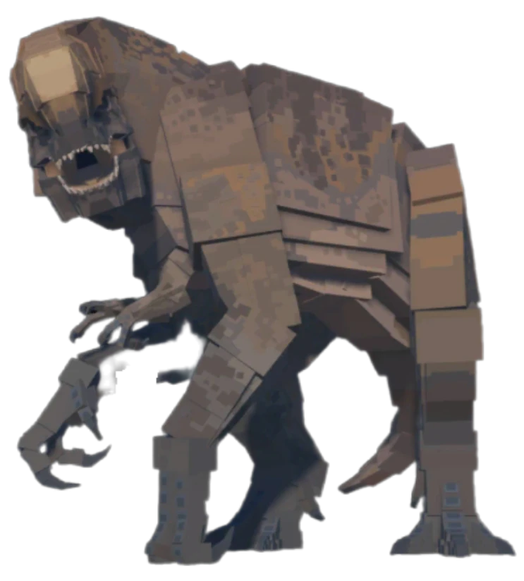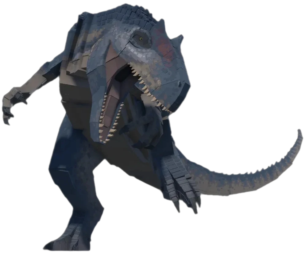본명은 D렉스이며 티라노 사우루스 DNA로 인해 돌연변이고 앞발이 4개 뒷발이 2개이며 팔로 잡아 머리 2번 박고 6번 물고 던지고 채력이 깎힐때마다 대미지,방어력이 높아진다 수동:분노
