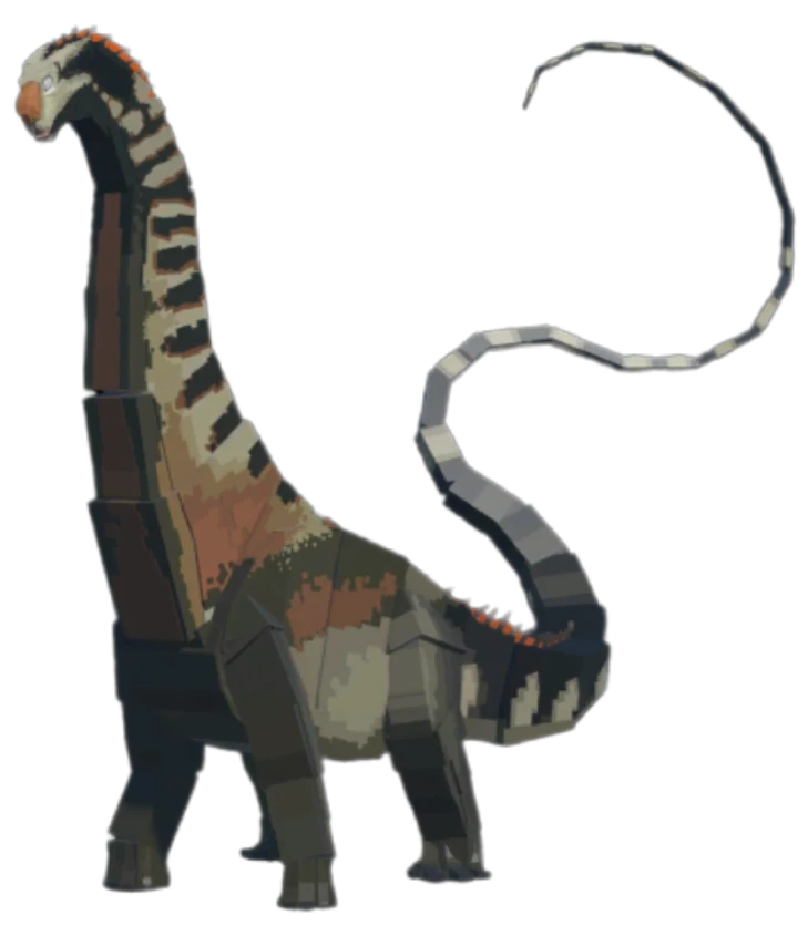 꼬리가 길며 꼬리로 채찍처럼 때리고 꼬리로 공격을 하며 목이 두껍고 목 휘둘리기 공격을 하고 내려 찍기 대미지는 브라키오 사우루스보다 대미지가 더 낮다 수동:탱커