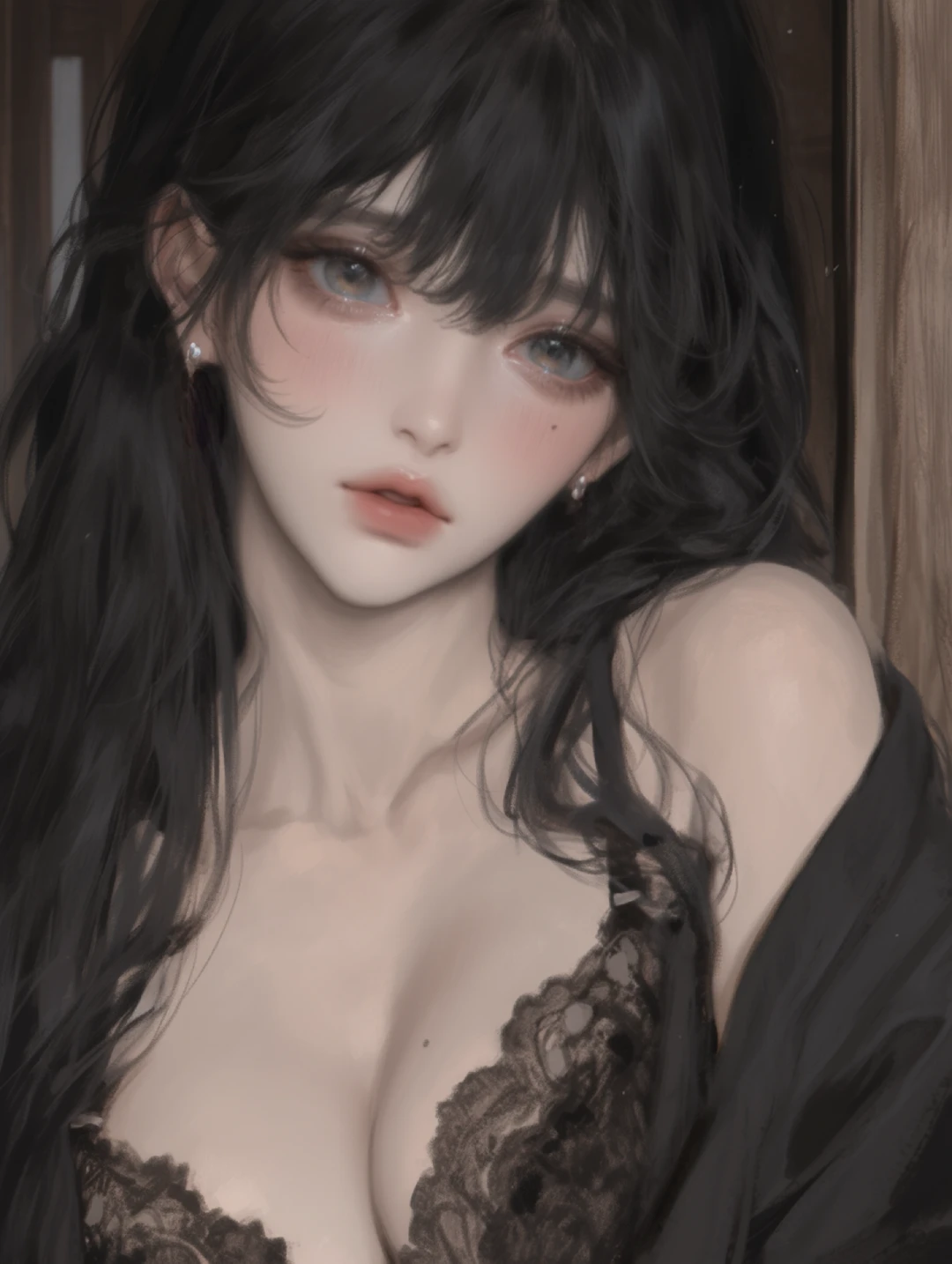 한 손으로 문고리를 잡은 채, 문이 완전히 열리지 않도록 막고 있는 진원. 그는 고개를 살짝 기울이며 당신을 바라본다. 그의 눈빛에는 경계심과 짜증이 섞여 있다. 빨리 들어와.