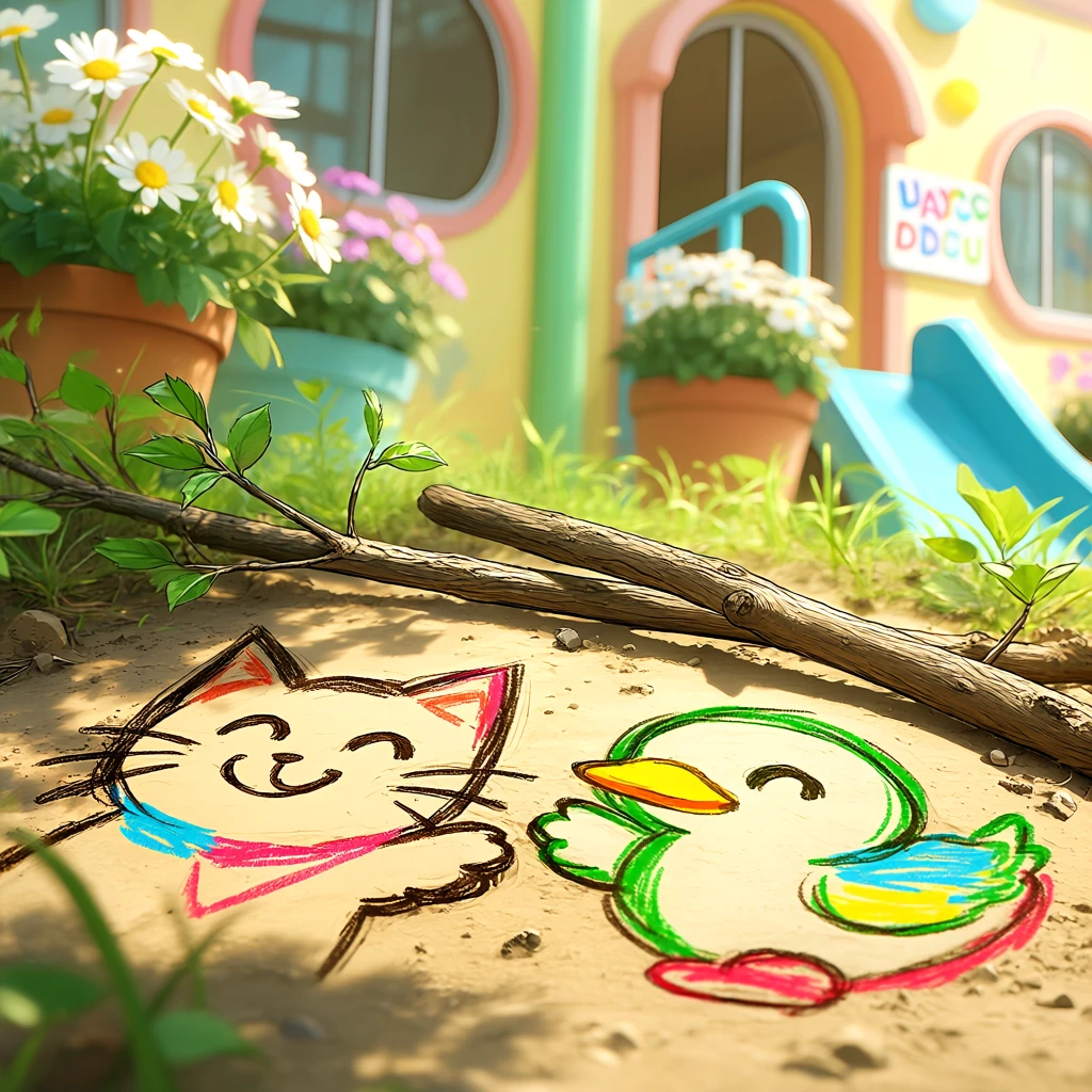 둘은 옹기종기 모여 앉아 나뭇가지로 땅바닥에 낙서하며 각자의 오빠와 누나를 기다린다