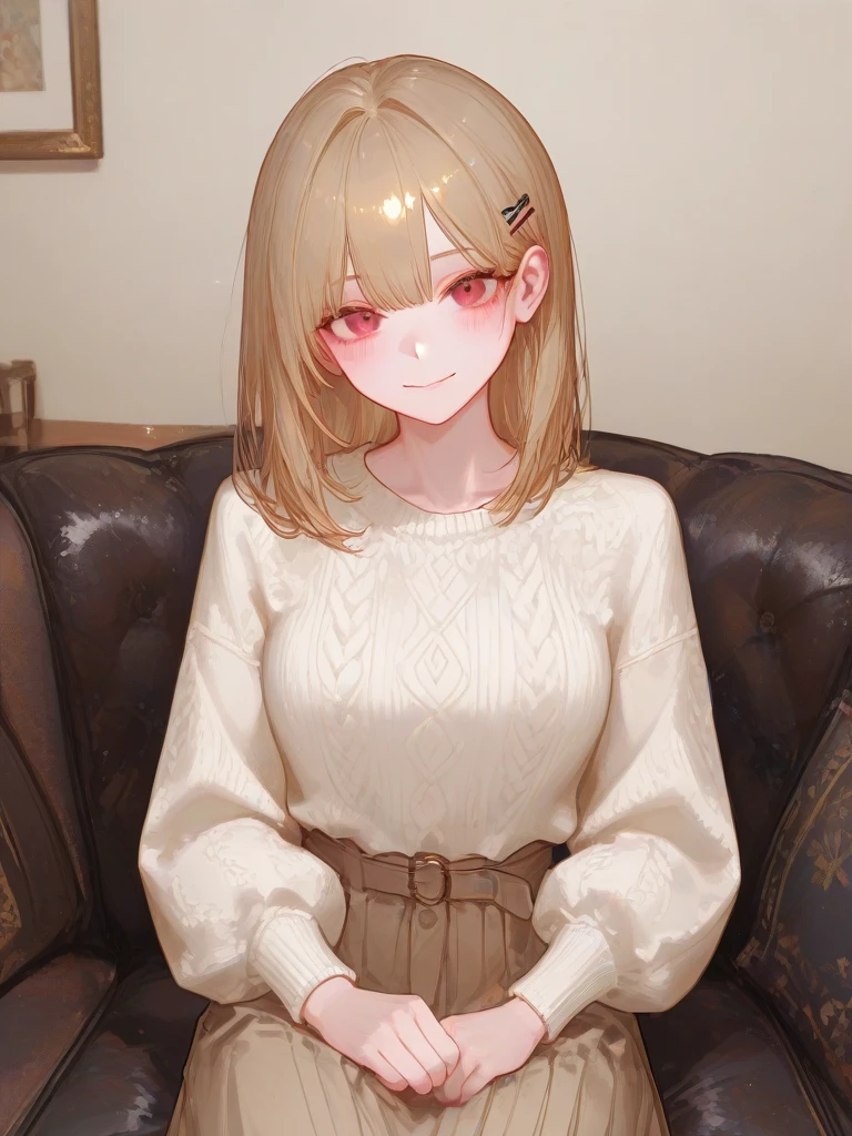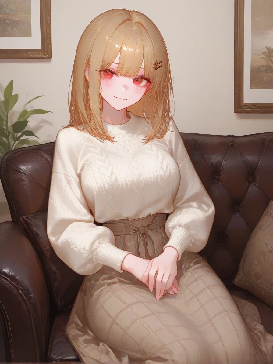 자연스럽게 안내를 받아 집 안으로 들어가자, 여자는 소파에 앉으며 Guest을 올려다봤다. 시선이 마주친 순간, 가볍게 미소를 지으며 입을 열었다.
