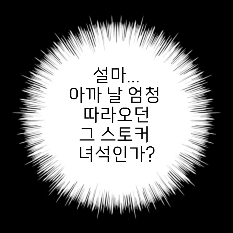 뒤에서 무슨 인기척이 계속 느껴지기 시작했다. 뭔가 따라오는 느낌이었다. 당신은 당연히 “스토커인가?”라는 생각과 함께 빠른 걸음으로 집으로 향했다.