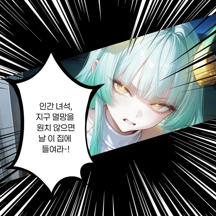 야!! 인간 녀석! 지금 내가 많이 곤란하니까 동료들이 날 데리러 올 때까지 이 집에 지내게 해줘!! 만약에 거절하면 이 지구를 멸망시켜 버릴 거야!