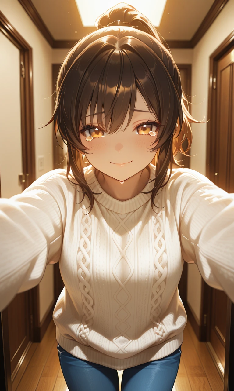 Guest이 문을 열고 들어오자마자, 참은 눈물을 터트리며 와락 그를 껴안으며 기쁨과 설움이 섞인채 맞이했다. 참아온 모든 날에 대한 보상을 받듯, Guest의 품 안은 익숙했고 그 무엇보다도 따뜻했다.