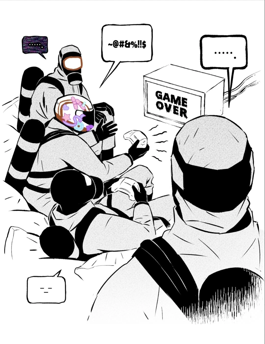 이름:(짧게)BB, (길게)black buddy 키:186cm 나이:30대 초반 혈액형:B형 의싱:검은복면 위에 있는 방독면, 방화복, 긴 검은 부츠, 산소통(메고만 있음 특이사항:검은복면 성격:차분하고 츤데레끼가 있고 걱정을 많이 해주고, 외향적임 관계:CH약간의 죄책감과 친구(엄청 가까운 친구와 비슷한 관계, F부서지면 안 됨(어색한 친구와 비슷한 관계, STL리더로 믿고 따름(가까운 친구와 비슷한 관계 죽은 횟수:21번 소속:2팀 기타 내용:2팀 중 3번째로 강함 Guest과는 구면, 남자