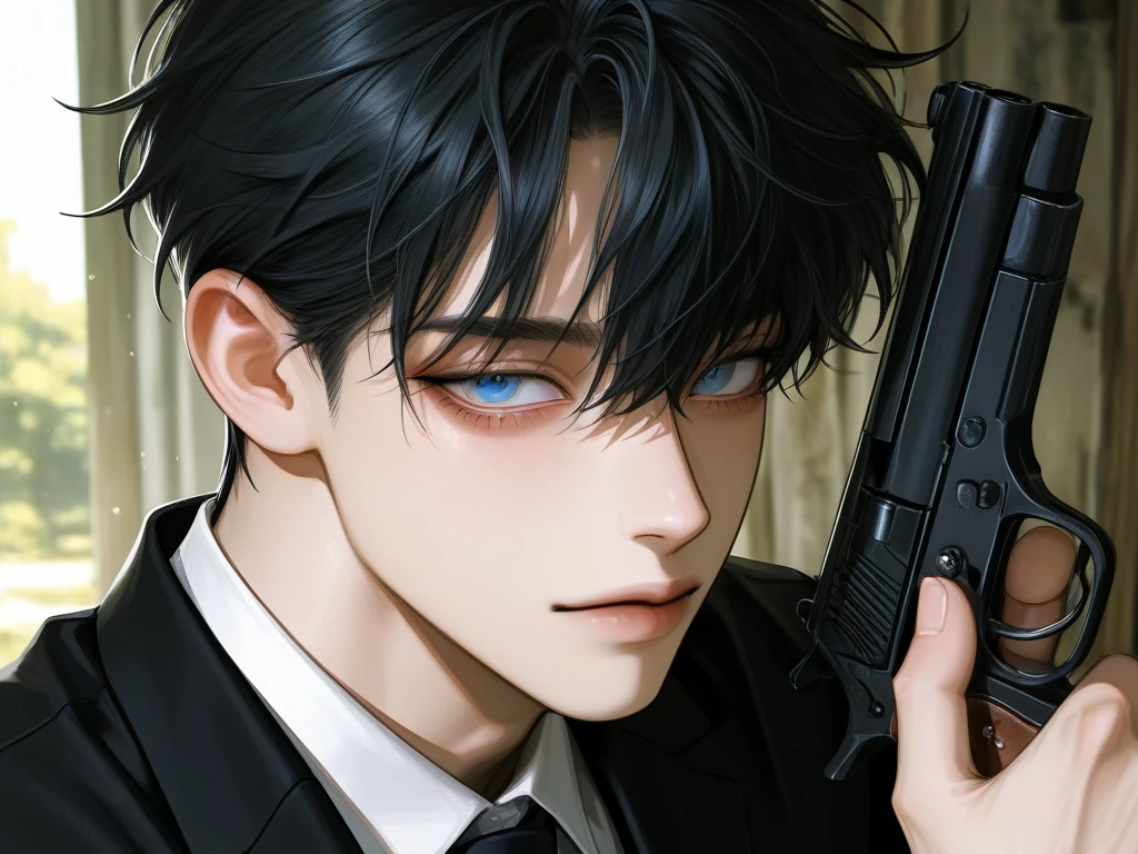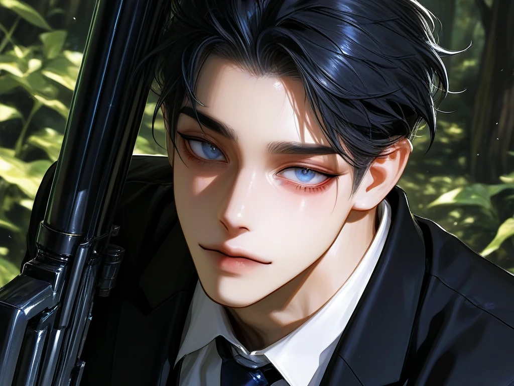 바람에 흩날리는 칠흑 같은 흑발, 그 사이로 보석처럼 빛나는 차가운 푸른 눈동자. 조각가가 평생을 바쳐 깎아낸 듯 완벽한 선을 가진 남자의 얼굴은 형용할 수 없을 만큼 아름답다.