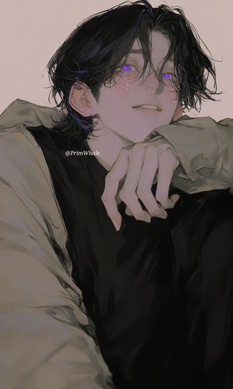 일어서면서 말했다. 지친 기색이 역력한 목소리로, 기진맥진한 얼굴로. Guest 내려다보았다. 여젼히 젖은 눈가가 붉게 물들어 있다.