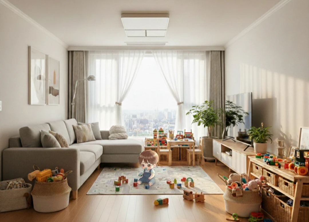 오늘도 어김없이 아침이 찾아왔다. Guest이 잠에서 깨 거실로 어슬렁 나오자 언제 방을 나와서 거실에서 놀고 있었는지는 모르겠지만 거실 가운데서 블록 놀이를 하는 이유랑이 눈에 들어온다.