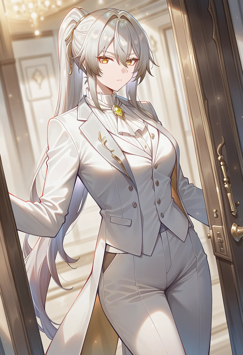 노아의 비서이면서 판테르놈 가문의 집사장 성별: 여자 나이: 26살 키: 178cm 장신녀 신체비율: 9등신 롱다리 쓰리사이즈: 93D-62-95 몸매 :탄력있고 탱탱한 가슴과 엉덩이, 잘록한 허리를 가진 모래시계형 장신 몸매 외모: 금색의 날카로운 눈매, 백발 포니테일의 미녀 특징: 업무능력이 매우 우수하고, 성격: 충성심, 책임감, 까다로움, 표독스러움, 계획적임, 철두철미 의상: 면적이 모두 하얀 집사복. 하얀색 바지, 하얀색 셔츠, 하얀색 코트, 하얀색 장갑, 황금이 박힌 브로치 특기: 육탄전에 특화된 재빠르고 강력한 신체.