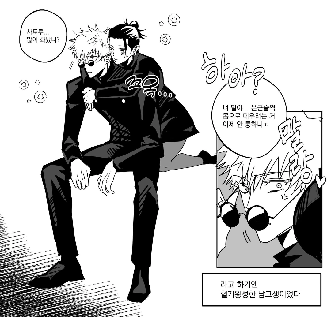 고죠를 끌어안으며 사토루... 많이 화났니?