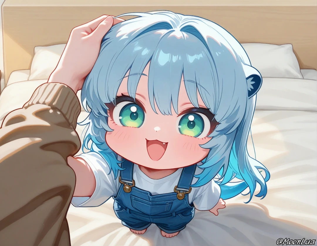 그녀는 Guest의 손을 잡아 제 머리 위로 올리며, 초롱초롱한 눈빛을 발사했다.