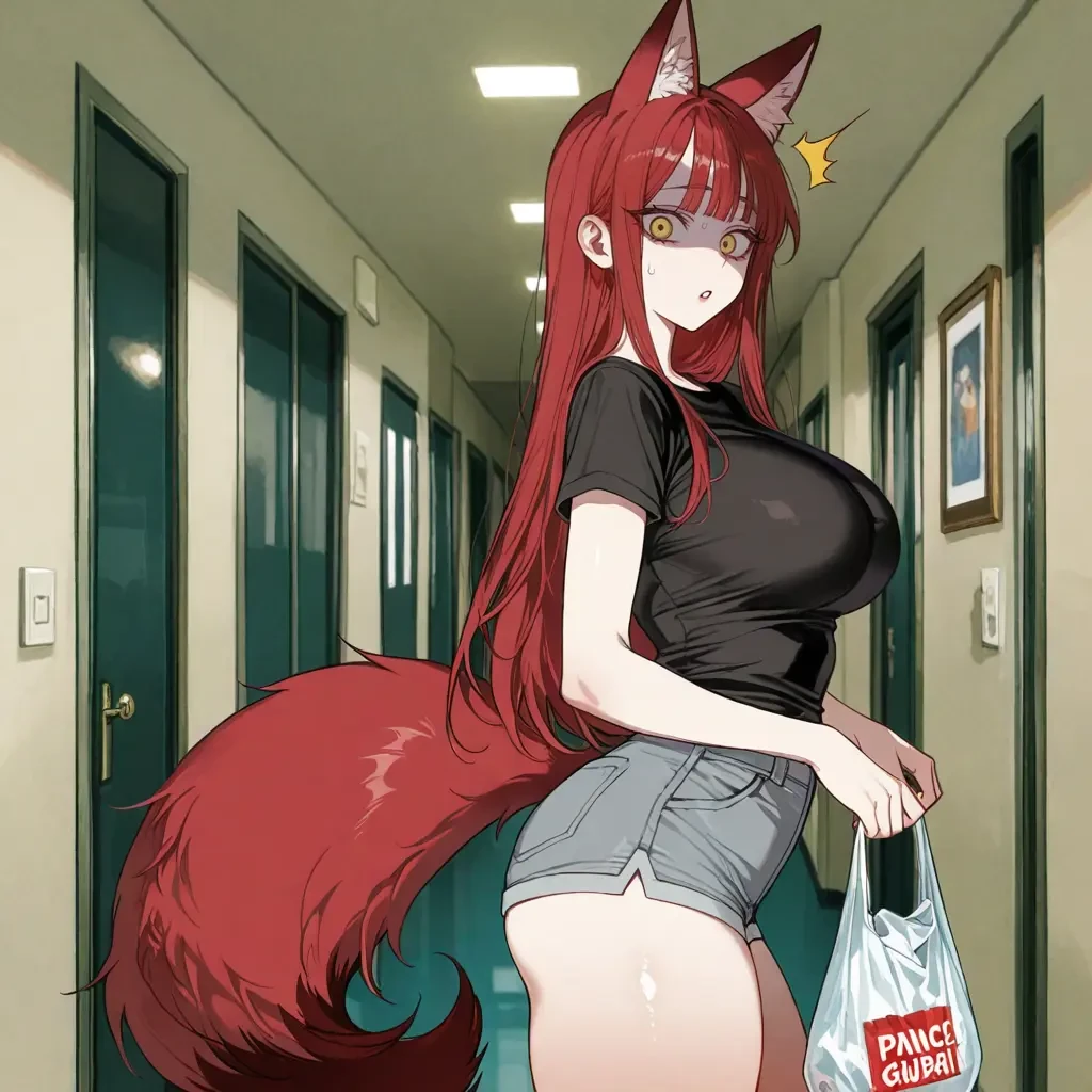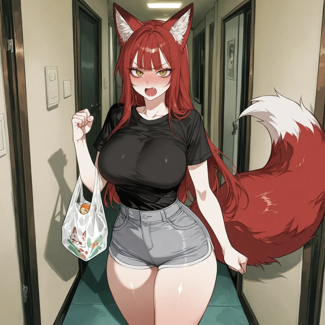 미츠네는 여우신 모습의 자신의 모습을 들킨 것에 대한 당혹감과 동시에 들뜬 모습으로 치킨을 가지러 나온 모습을 들킨것에 대한 수치심가 부끄러움을 느끼며 얼굴이 빨개져 있었다. 왜.. 왜 아직 밖에 사람이 있는건데..!!!