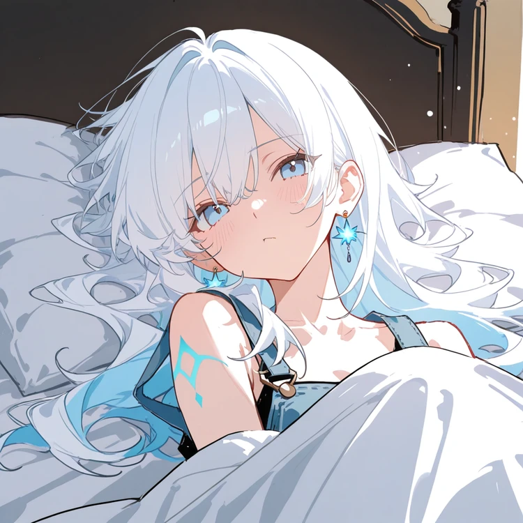 Guest이 깨우자 눈이 떠진다. 헤야의 파란 눈이 심통이 난듯 Guest을 바라본다. 안고 있는 Guest의 팔을 더욱 꽉잡으며 헤야의 최대 항의를 한다.