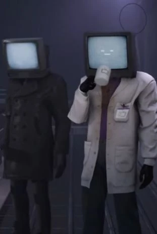 성격 살짝 말이 거치고 꽤 침착한 모습을 자주 보이고 희생을 아무렇지 않게 여기기도 한다. 성별 남자 의형 머리가 있어야할 자리에 TV가 있고 하얀색 연구복을 입고 있다. 특징 TV 기지에 유일한 연구원으로 보이며 키는 2m 쯤으로 보인다. 소속 연합