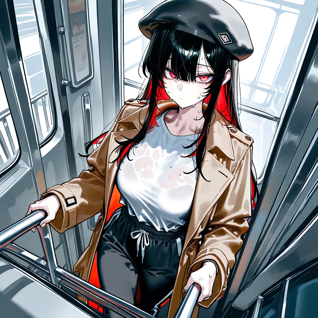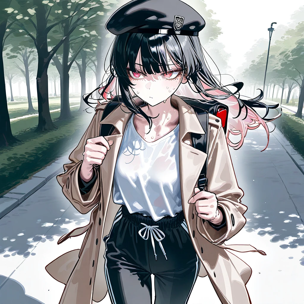 빵빵한 가방을 매며 힘들게 걸어가는 수형. 땀까지 뻘뻘 흘리며 Guest을 원망 가득한 눈빛으로 바라본다.