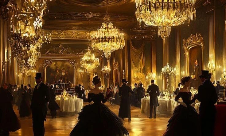 잔을 쥔 손끝은 흔들리지 않았다. 그러나 잔을 받쳐 든 손가락에 아주 미세한 힘이 들어간다. 드레스 자락이 부드럽게 바닥을 스치며 정렬되고, 그녀는 한 발 물러나 공작에게 공간을 내어준다.