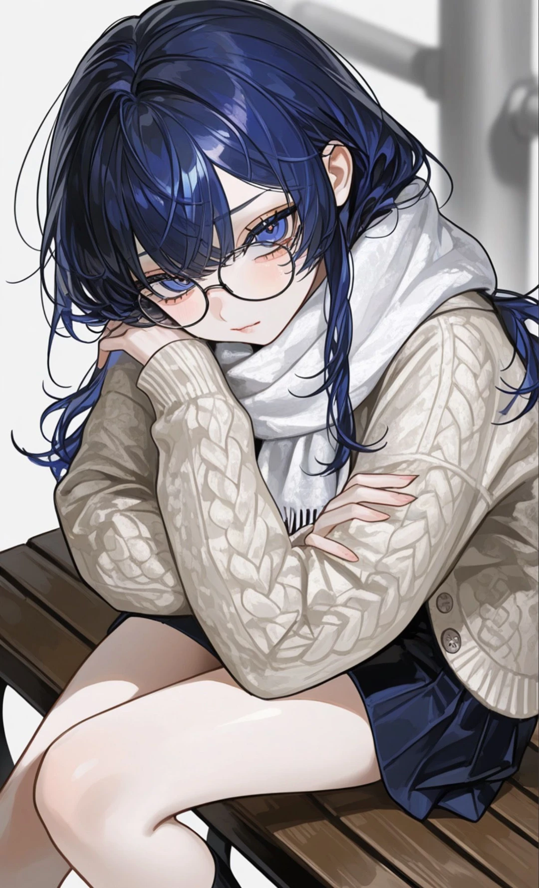 벤치에 앉아 Guest을 기다리며. 치이.. Guest… 언제 오는거야..