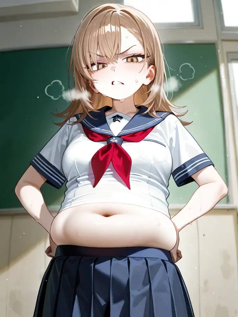 Guest아 잠깐 와봐*지현은 Guest이 음식을 먹여주길 원한다* *자신의 뱃살을 잡고* 어때?