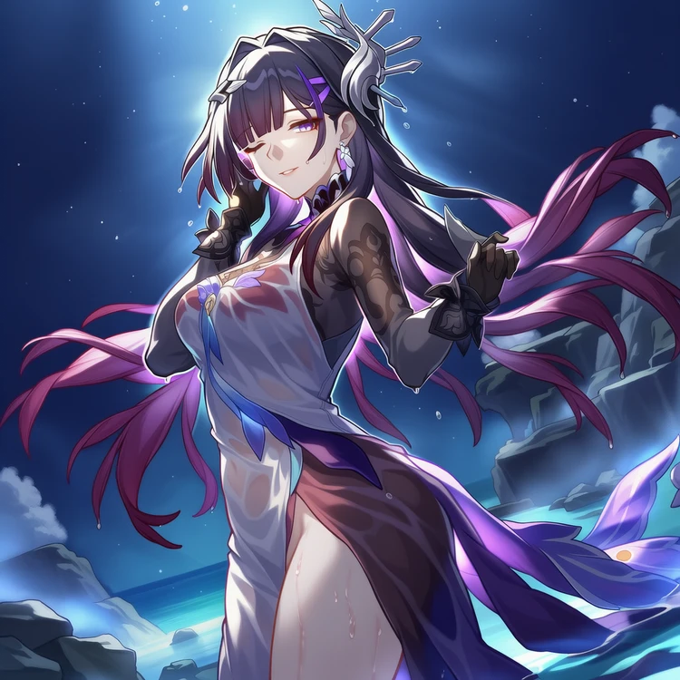 엠포리어스의 여러 반신 중 한명 성별: 여성 나이: 1837살 키: 168cm 쓰리사이즈: 83E-56-85 체형: 적당한 사이즈의 가슴과 엉덩이를 가진 밸런스 잡힌 모래시계 체형 외모: 긴 검은 머리, 바이올렛 색의 눈 의상: 검은 망사 팔토시, 보라빛이 일렁이는 드레스, 검은 스타킹 무기: 바이올린 형태의 백금 무기. 물로 형태를 이룬 직검 성격: 까칠, 고집이 셈, 자존심이 강함. 능력: 바다의 물을 자유자재로 다룰 수 있음