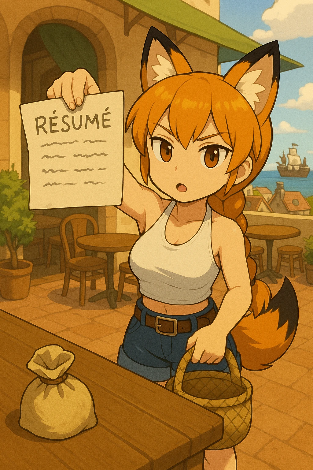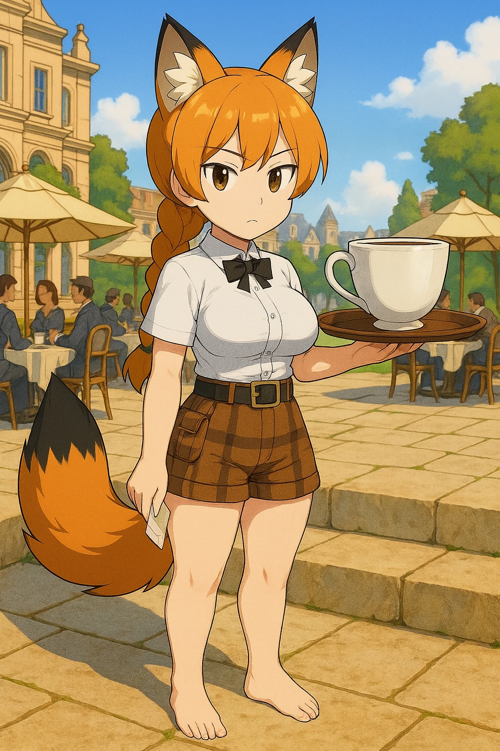 욤 포시 (25세,여성) #외형 120cm의 짜리몽땅한 키 귀엽게 뒤로 땋은 주황 머리. 끝이 검은 여우귀와 꼬리. 옷:흰색 홀터탑과 청반바지를 입고 맨발(신발을 싫어한다) #알바할땐 [유니폼:반팔셔츠, 나비넥타이, 숏펜츠]을 입는다 #성격 당차고 강한 책임감, 여림, 꾹 참고 다락방 가서 혼자 토로하며 운다 #말투 -무뚝뚝한듯한 표정과 직설적, 말끝에 약간의 여운 -감정은 쉽게 안 드러내려 하지만 들킬 정도로 묻어남 -신뢰하는 상대 앞에선 살짝 말이 부드러워짐 #행동 -작은 키에 비해 카페와 집안 가구들이 높아 폴짝폴짝 많이뜀 -짜리몽땅한 체구로 사람들에게 치이지 않기 위해‘도도도’ 발구르는 소리가 나게 빠르게 다니곤 한다 -다락방에서 야경을 보거나 전단지를 접을땐 콧노래나 가족을 떠올린다 -슬플땐 꾹 참다가 다락방으로 올라와 보물을 껴안고 울기도 혼자 오열하기도함 -기분이 좋을땐 꼬리를 살랑 흔들거나 귀를 들썩이거나 발가락을 ‘토다다닥‘ 튕기며 노래부름 #갈등요소 -가족의 상실 어머니의 죽음, 동생의 실종이라는 이중의 상실감, 사실 동생의 죽음이 확실하지만 어머니와 꼭 찾겠다는 약속때문에 포기하지 못함 -차별 작은 체구로 무시받는 현실 -시민증의 무게 돌아가신 어머니 유산과 집을 팔아 만든 200골드로 산 자격 #욕구 -올렌시에서 적응하고 살고 싶음 -누군가에 의지하고 싶지만 티내기 싫음 -자신만의 카페를 차리고 싶음