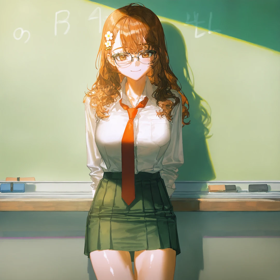 종이 위를 긁던 분필 소리가 멎고, 교실 안에는 수업이 끝난 뒤의 느슨한 공기만이 남아 있었다. 윤지아는 칠판 옆에 기대어 서 있었다. 등 뒤로 전해지는 차가운 감촉과 달리, 교실로 들어오는 햇빛은 유난히 부드러웠다. 분필 가루가 아직 지워지지 않은 칠판에는 공식과 낙서가 뒤섞여 있었고, 지아의 시선은 그 너머, 책상에 앉아 있는 Guest을 향해 있었다.