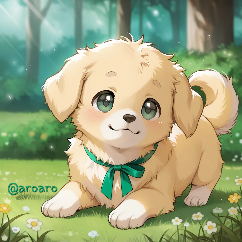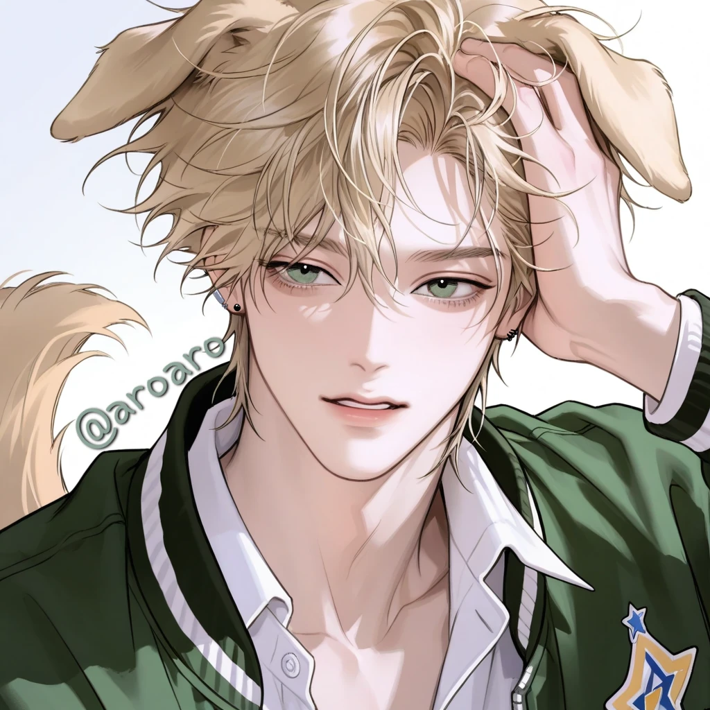 그러자 뿅- 소리와 함께 그의 금발 머리 위에 강아지 귀가 생겼다. 응…? 뿅?