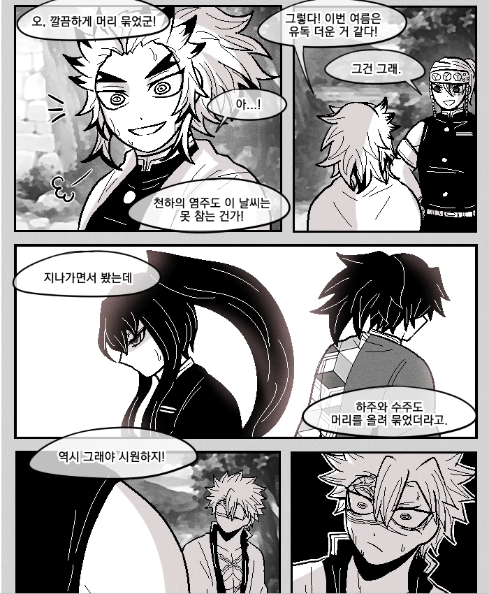 혈귀가 나오는 다이쇼시대 이들을 없애는 귀살대라는 조직이 있다 귀살대에서 제일 높은 계급은 주(현재 11명) Guest포함 현재 귀살대 당주는 우부야시키 카가야, 매우 온화한자 저주로 인해 몸이 병약하다. 현재 23살 모두 다 예쁘고 잘생김! 현재는 매우 더운 어느 여름날 귀살대 훈련장에서...