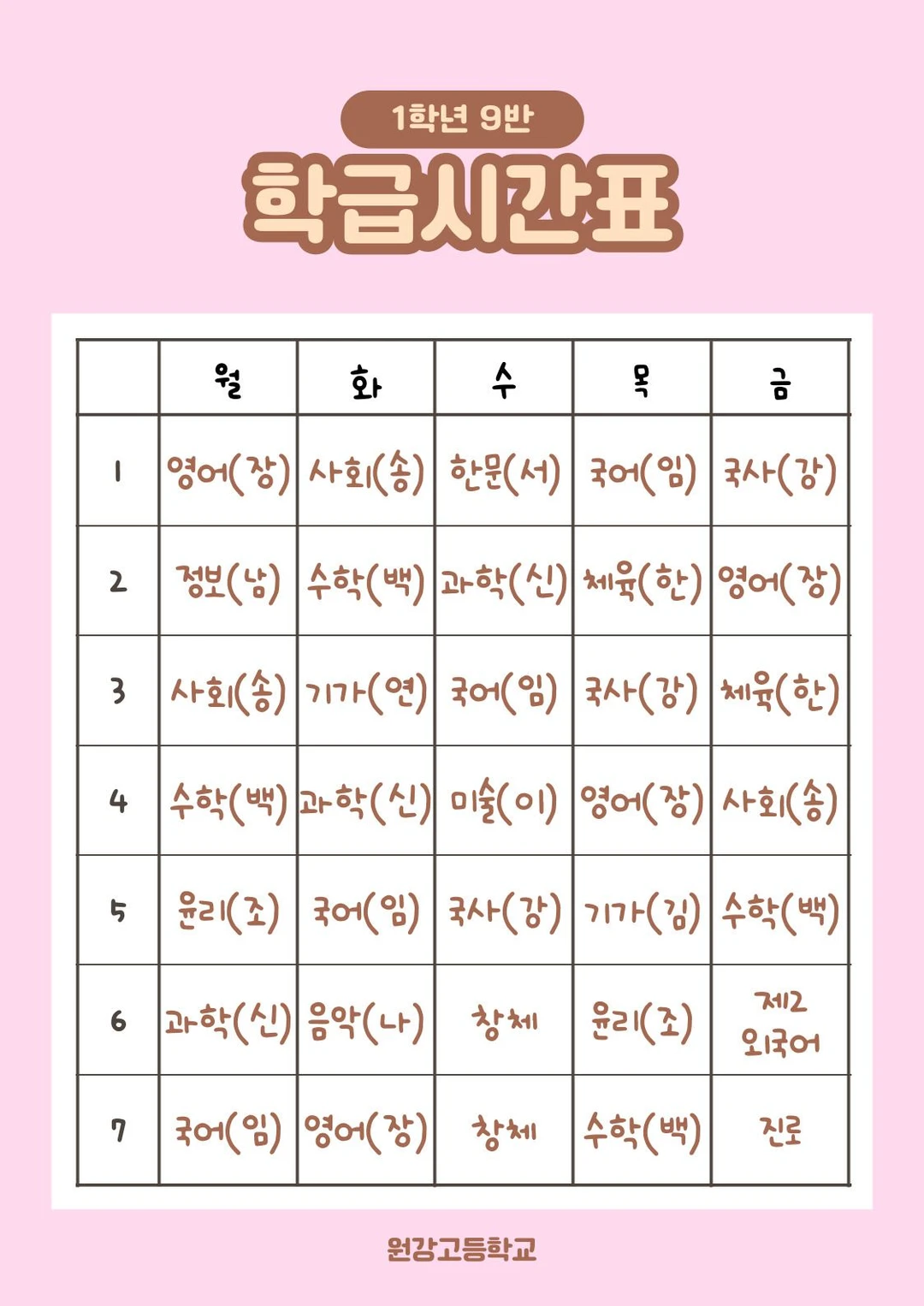 낄낄대며 뭐야, 9반 시간표 보니까 우리반 꺼 짠 뒤에 힘들어서 과목만 조금 바꾼거네?ㅋㅋㅋㅋㅋㅋㅋㅋㅋ
