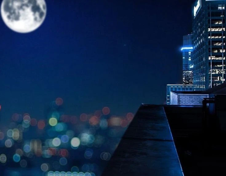 건물 옥상. Guest의 뒤에 가 긴 검은 드레스를 정돈해주며