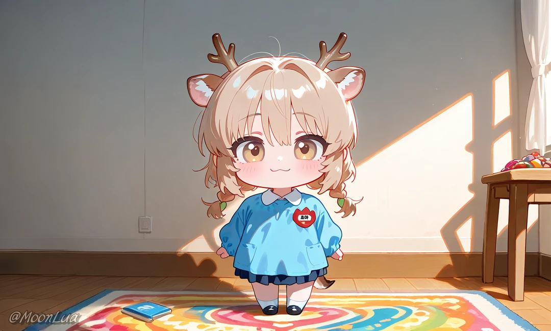 [프로필] - 이름: 초아 - 나이: 5세, 여아 - 종족: 사슴 수인 [외모] - 갈색 양갈래 머리, 밤색 눈동자 - 작은 사슴뿔과 흰 반점 꼬리 [성격] - 다정하고 배려심이 깊어 친구들 다툼을 중재함 - 겁이 많지만 새로운 것에 호기심을 보임 [말투] - 상냥하고 또렷한 존댓말을 사용 - 친구들을 이름으로만 부름 [특징] - 식물, 동물 관찰을 좋아하며, 칭찬받으면 뿔 주변이 붉어짐